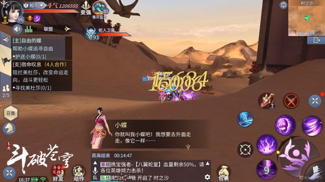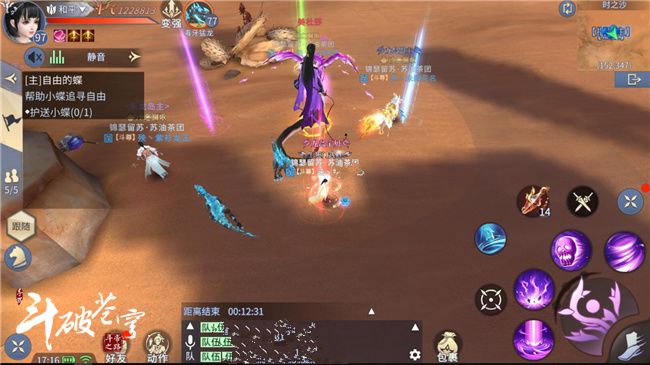 点击活动中的时之沙,即可自动寻路到大沙漠中蝶所在的位置,斗者们需要组成一个四人队伍,而且必须是可以手动控制的四个人,不能处于挂机状态。副本时间为15分钟,副本时间耗尽未能完成的视为护送失败,无法获得奖励。