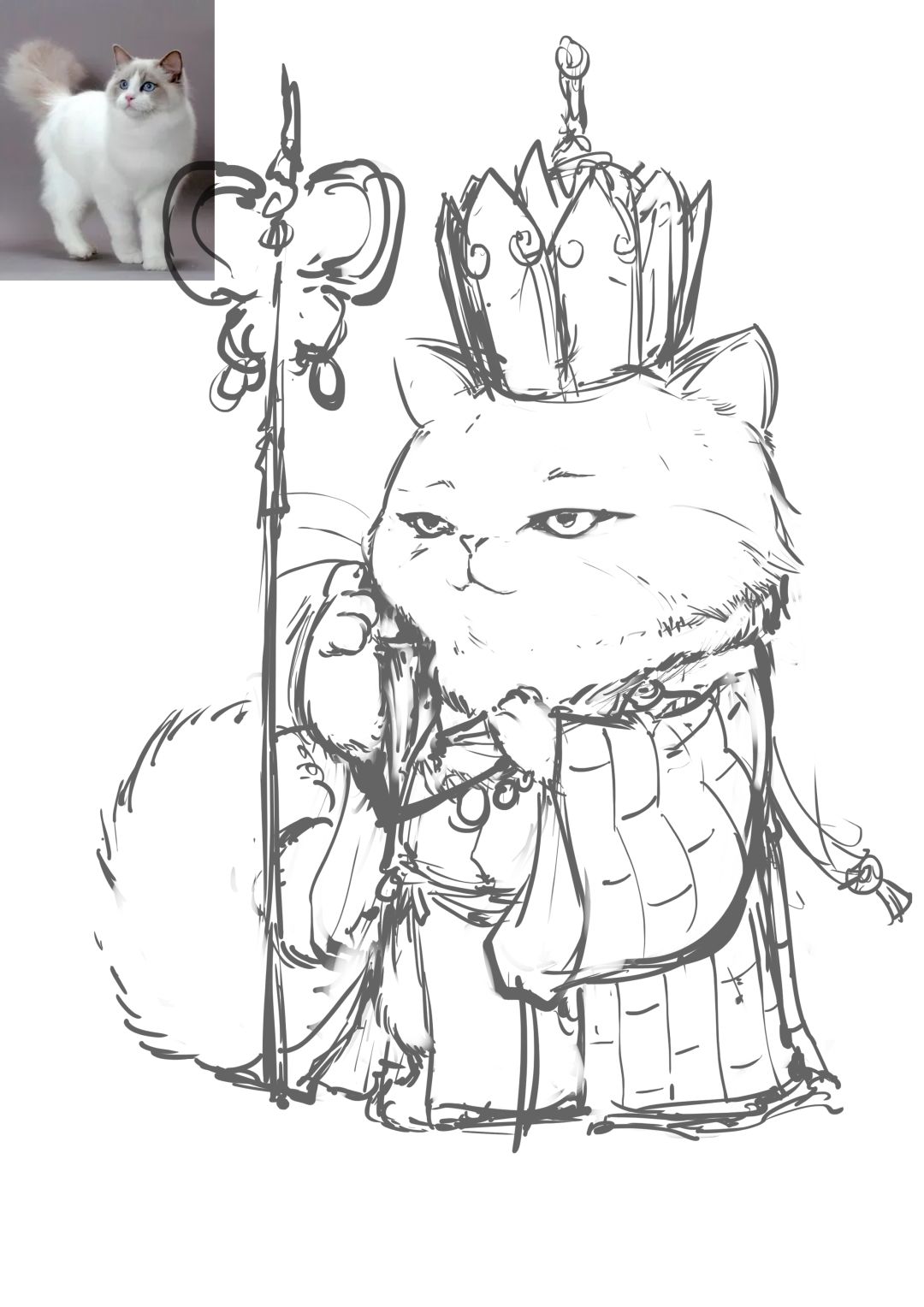一只只可爱的喵星人身上都带有浓郁的水墨风格,我们天天按着美术的脑袋让他们细致细致再细致!要求他们细致到可以让人感觉到毛茸茸的猫毛为止。 美术小哥们为了画这些角色参考了很多现实生活中的猫咪,不知大家看出来了没,好吧我知道肯定有人看不出来,因为我也认不全T_T(以下是珍贵草稿图)