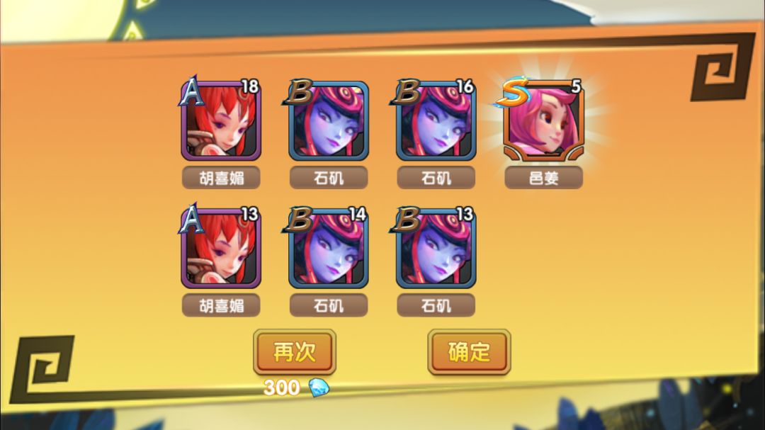 抽300钻石(以A将为主力):从目前来看,A将的技能和适用面都比较尴尬,实用性都不太高。A将的整体水平远逊S将,也没比B将强多少,却又需要消耗钻石培养。从新人发展的角度,前期不建议以A将作为主力阵容培养。