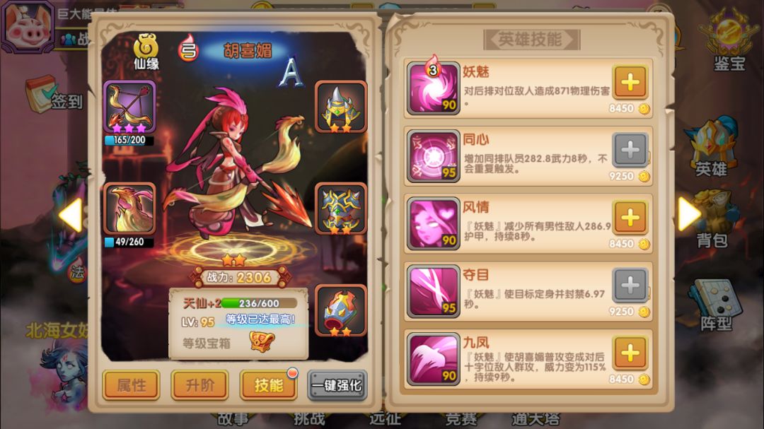胡喜媚:小狐狸作为一个功能性辅助,专门针对那些单一的boss关。3气长达6.75的封禁+定身,被命中后的boss可以说是咸鱼一条。有了紫狐狸后,一些看似挑战不可能的boss关都变得很简单。