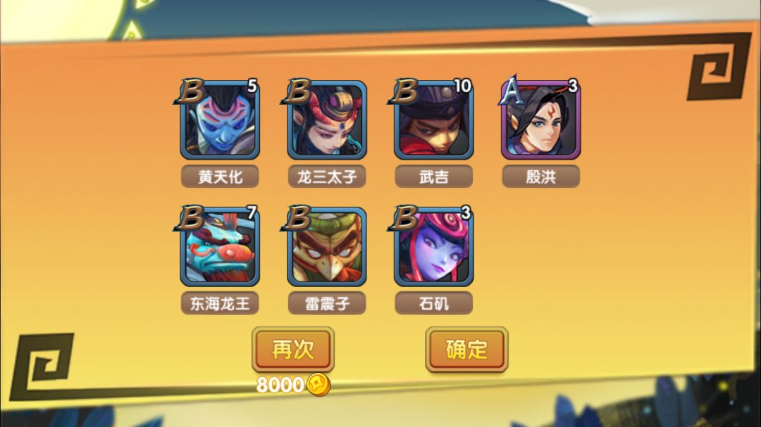 8000金币抽卡(以B将为主力):由于金币每天都可以源源不断地刷(每天50w上限),对于前期不想投入太多的同学来说,都建议先培养一队至两队橙B或者金B,体验各种副本的模式,摸清各种技能、阵容的特点,后续再根据自己对游戏的理解来补充自己喜欢的A、S卡。