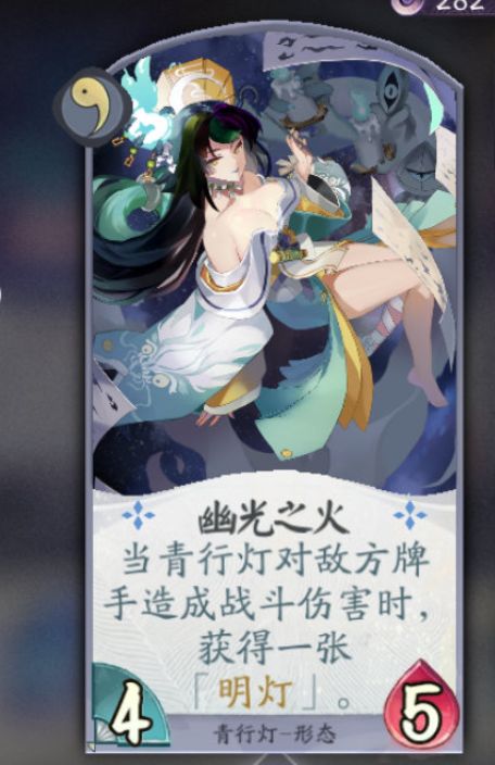 灯姐的幽光之火是前期一个站场+攒明灯的一个不错选择,如果觉得不适用可以再换成一张百物语之火,但其实真的挺好用的,因为1勾4攻击的高攻形态牌并不多,打快攻1勾时经常也有1换1-2的效果。