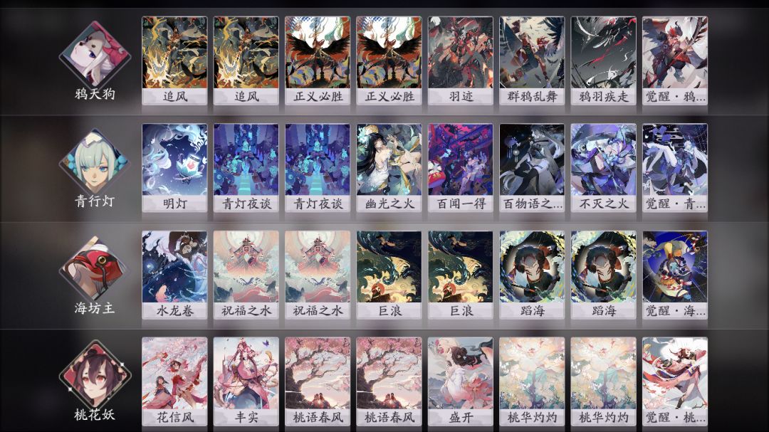 对抗中后期型牌组:灯鸦海花对抗任何后期卡组都有绝对的实力,因为我们要火有火,要面板有面板。入场换取手牌时,尽量换一些后期的核心牌,比如各式神的觉醒,桃花妖的盛开大奶卡等等,打心灵迷宫利用好灯姐的觉醒+明灯,再不济发牌员不给面子时,手牌较差还有灵活的鸦天狗,桃花的复活等等。这套阵容清理后排的手段也不少,海坊主的巨浪+水龙或是祝福之水+水龙就不再过多介绍了,主要是鸦天狗的羽迹,也是一个击杀后排的手段,实战下来也都非常好用。