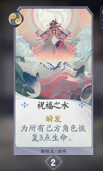 祝福之水:海坊主瞬发的续命牌,必要时可以留到后期搭配觉醒一起使用,其瞬间提升的面板往往令对面感到绝望。