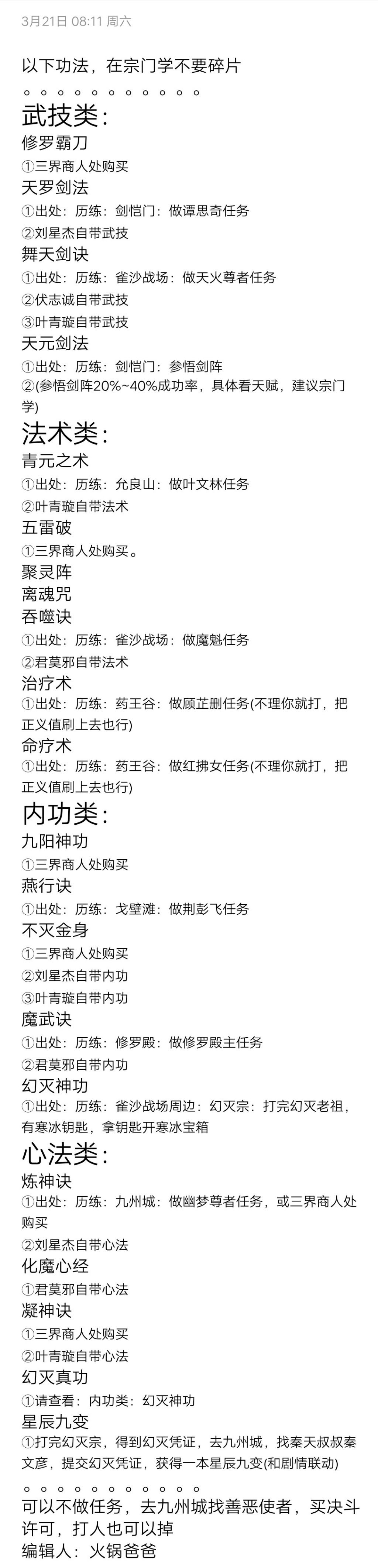 宗门学(开)功法不要碎片的那些功法整理以及碎片出处