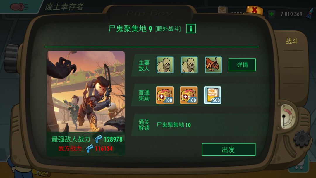 然而,高额辐射还是有点难过,所谓知己知彼,百战不殆,下面扑上废土的关卡(为体验服数据,正式服难度大幅度下降)