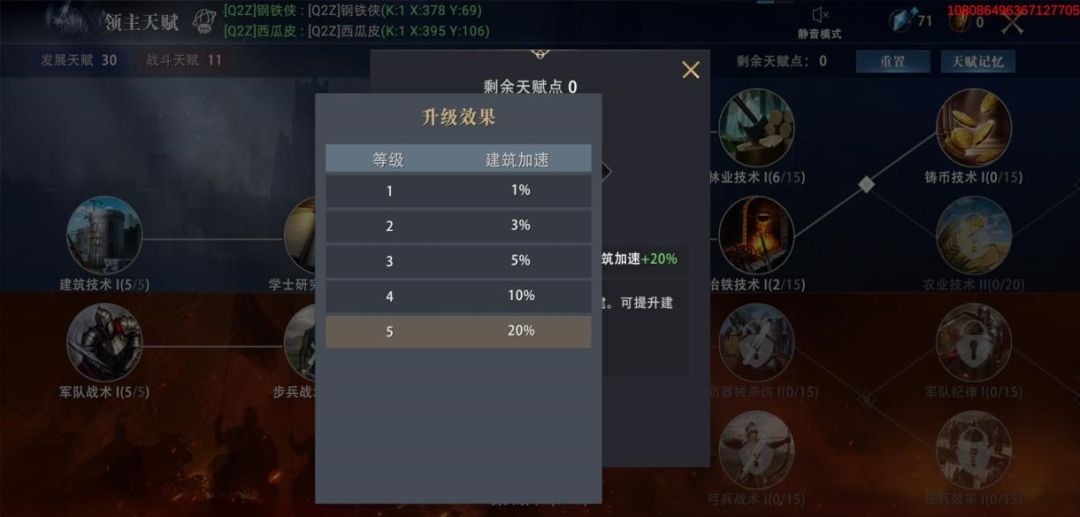 在建筑技术加成上,领主们的选择便自由得多,可以根据自己需要来加成,如果缺金币,就将天赋点数尽量多的分配到铸币技术上,其他类资源也是如此。至于建造速度和科研速度,领主们大可以通过加速道具和请求盟友帮助来减少时间。资源采集速度以及军团的负重,这两个选项对于野外资源采集来说非常重要,速度和量决定了能获得多少资源。划重点!非常缺资源的小伙伴们千万要注意啦!