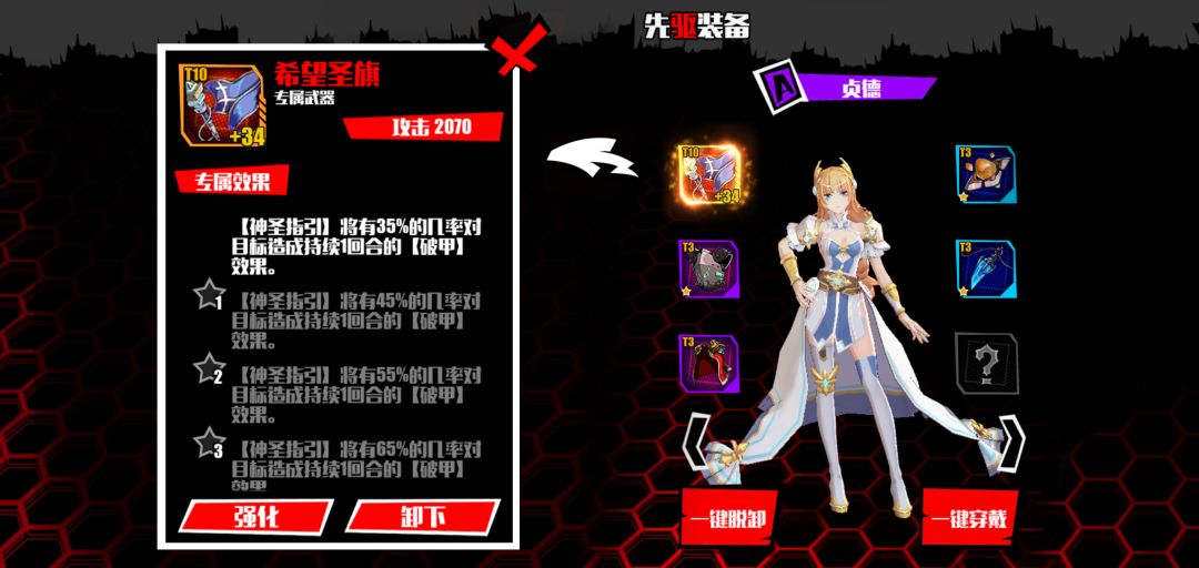 每个先驱都有自己独一无二的专属武器,专属武器有更强大的属性和附加效果,普通武器完全不能比!因为是专属,武器属性自然跟所属的先驱最为契合,独特的武器特效和外观展示都是必须的!