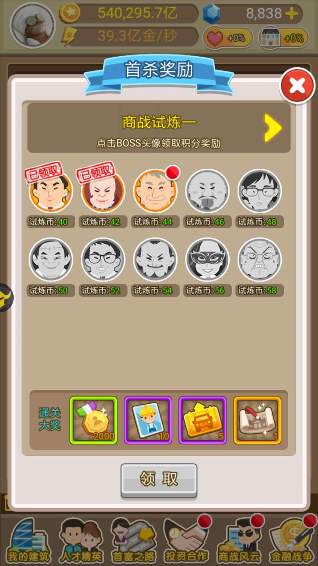 温馨提示:商战试炼功能要达到市级商界领袖才能解锁哦~