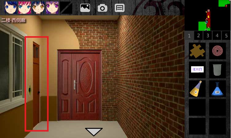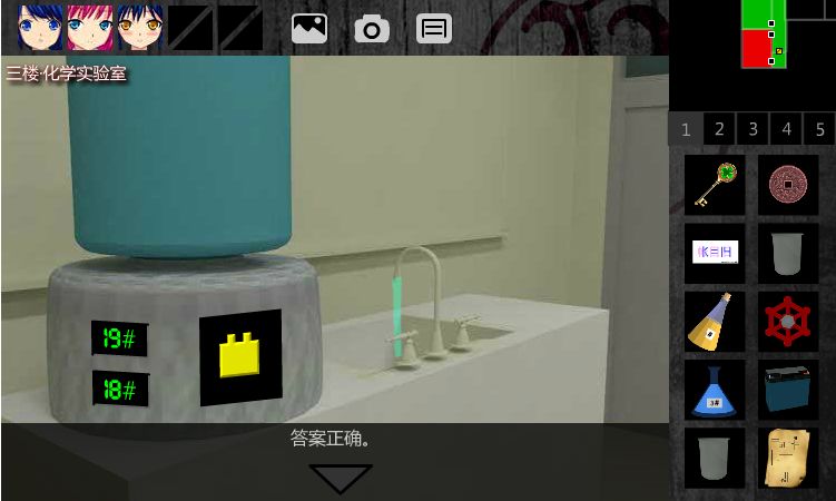 5.解开前方反锁的门,进入3F•西侧廊。解开右前方反锁的门,进入3F•化学实验室。