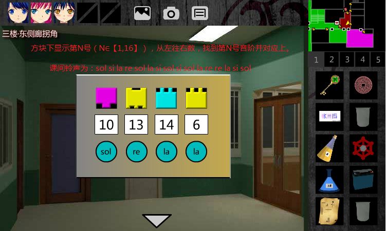 出门,收回4个【方块】。现在去解开8间教室,前后拍照(记录教室面貌)。