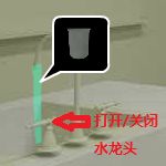 操作1.打开水龙头,可以用烧杯接清水。把【烧杯】拖到水柱上,盛清水。