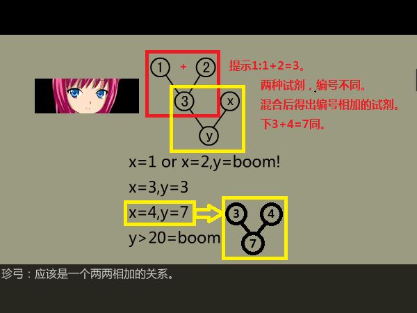例:1+2=3,用这种3号试剂,3+1=boom,3+2=boom。