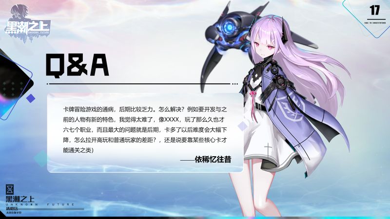 Q:卡牌冒险游戏的通病,后期比较乏力。怎么解决?例如要开发与之前的人物有新的特色,我觉得太难了,像XXXX,玩了那么久也才六七个职业,而且最大的问题就是后期,卡多了以后难度会大幅下降,怎么拉开高玩和普通玩家的距离?还是说要靠某些核心卡此案能通关之类的?