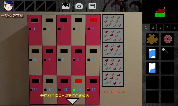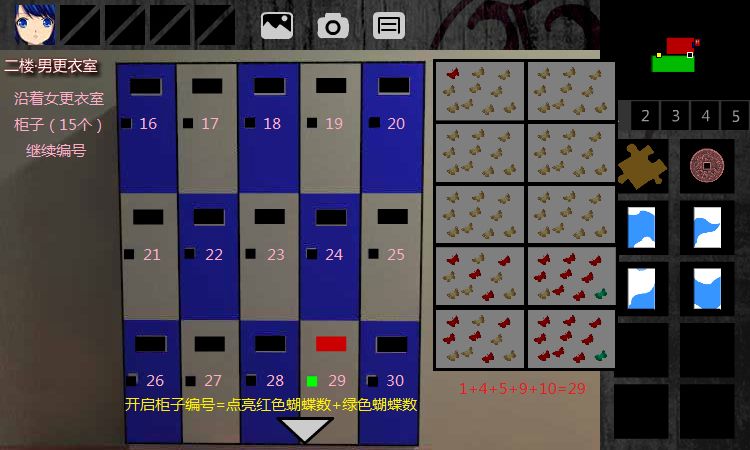 对柜子编号,结合柜子发现:开启柜子编号=点亮红蝴蝶数。