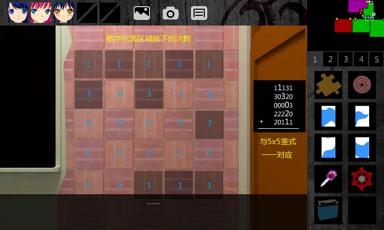 21.点击天花板上的洞,翻洞,左转,靠近粉墙。发现粉墙的格子是可以按动的,小琪给出提示(点击灯泡可查看详情)。可按动的区域是5x5。