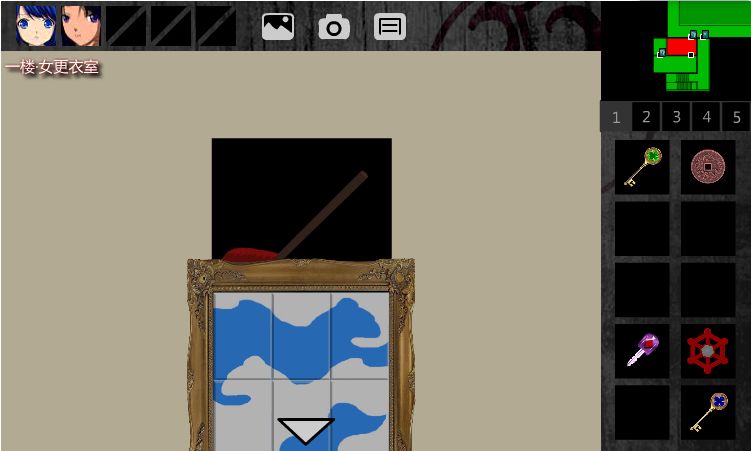 2.左转2次,观察脸谱,把【小眼球】放在右边的孔里,获得【拼图】和【铜币】。