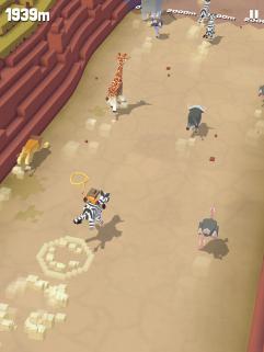 松开手指后,主角便会跳起,再次按下手指,就能跳到套索覆盖位置的动物身上,继续奔跑。