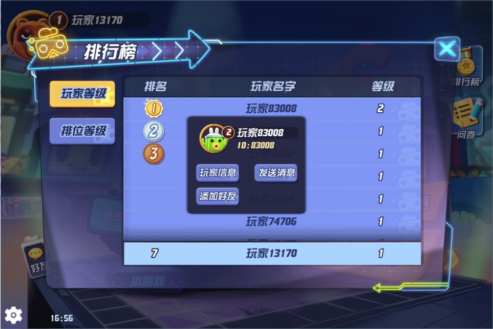 看到排行榜上的高手,是否也想跟他一试高下呢?那就添加好友,约战一盘吧!