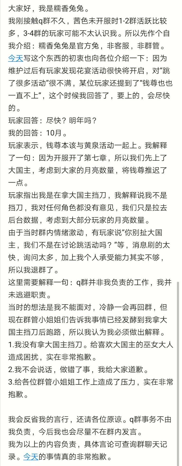 先两张图置顶吧。图一是黄泉大蛇活动第一天,N多人648氪金大蛇沉船后,四群某管理出来说的话。