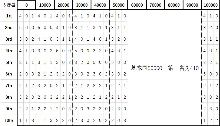 对于0支0防0chain的情况,排名如下