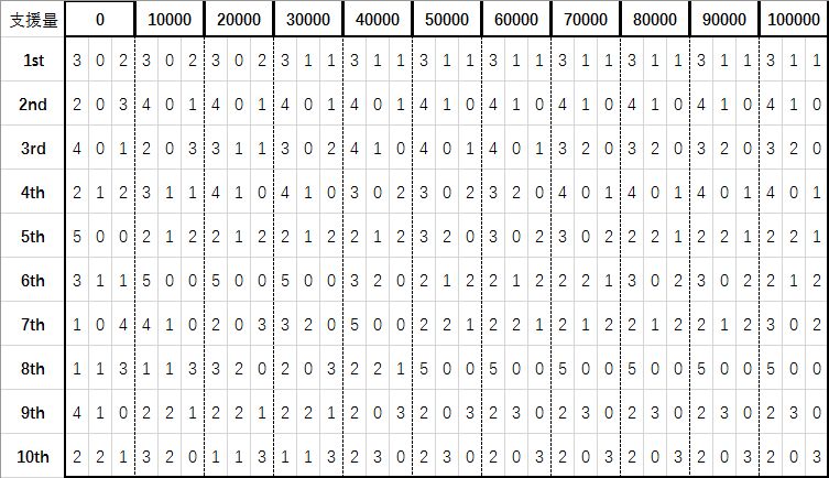 以下为10000防0chain的情况,用于模拟BOSS战(5武器纯白+0,技能全10级),从左到右为乖离一期、乖离二期、茶会斧头,仅列出前10