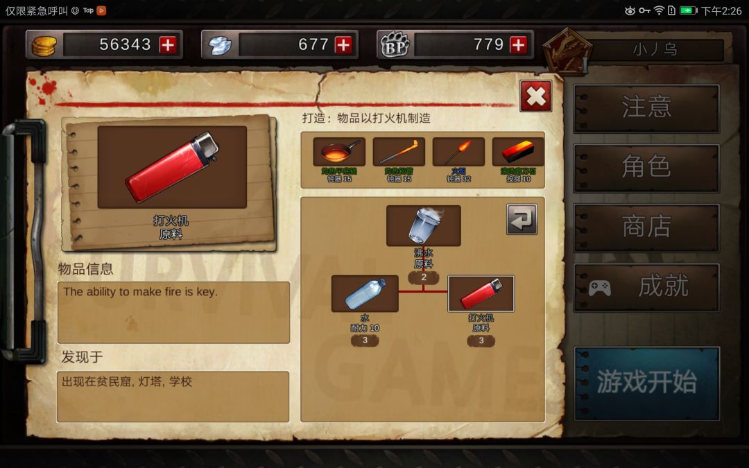 制作未来双叉则必然要在学校摸到打火机 2次热水,1次酒精面包,刚好用完初始的3水