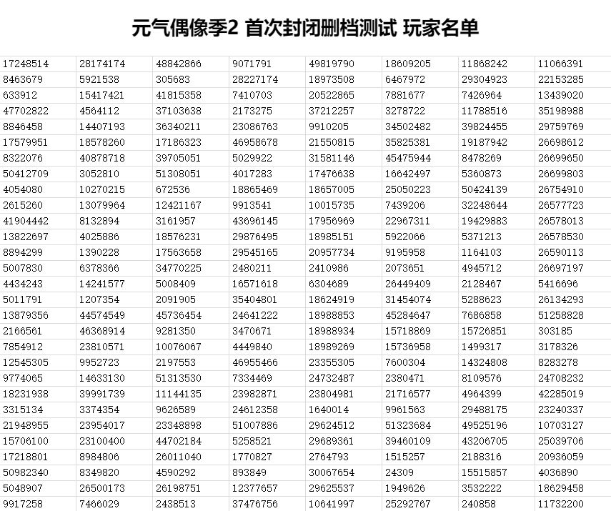如果你的ID在表格内,就说明你已成功获得9月20日预演测试资格,测试开始后使用该TapTapID对应的账号登陆即可进行下载。