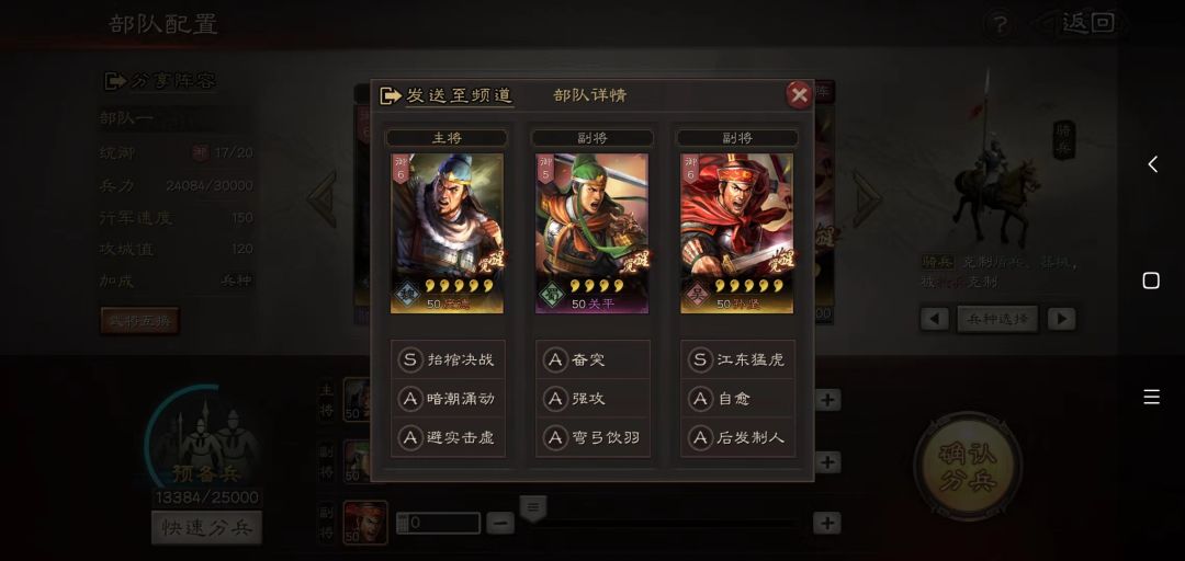 推荐队伍:庞德 关平 孙坚 骑兵阵容