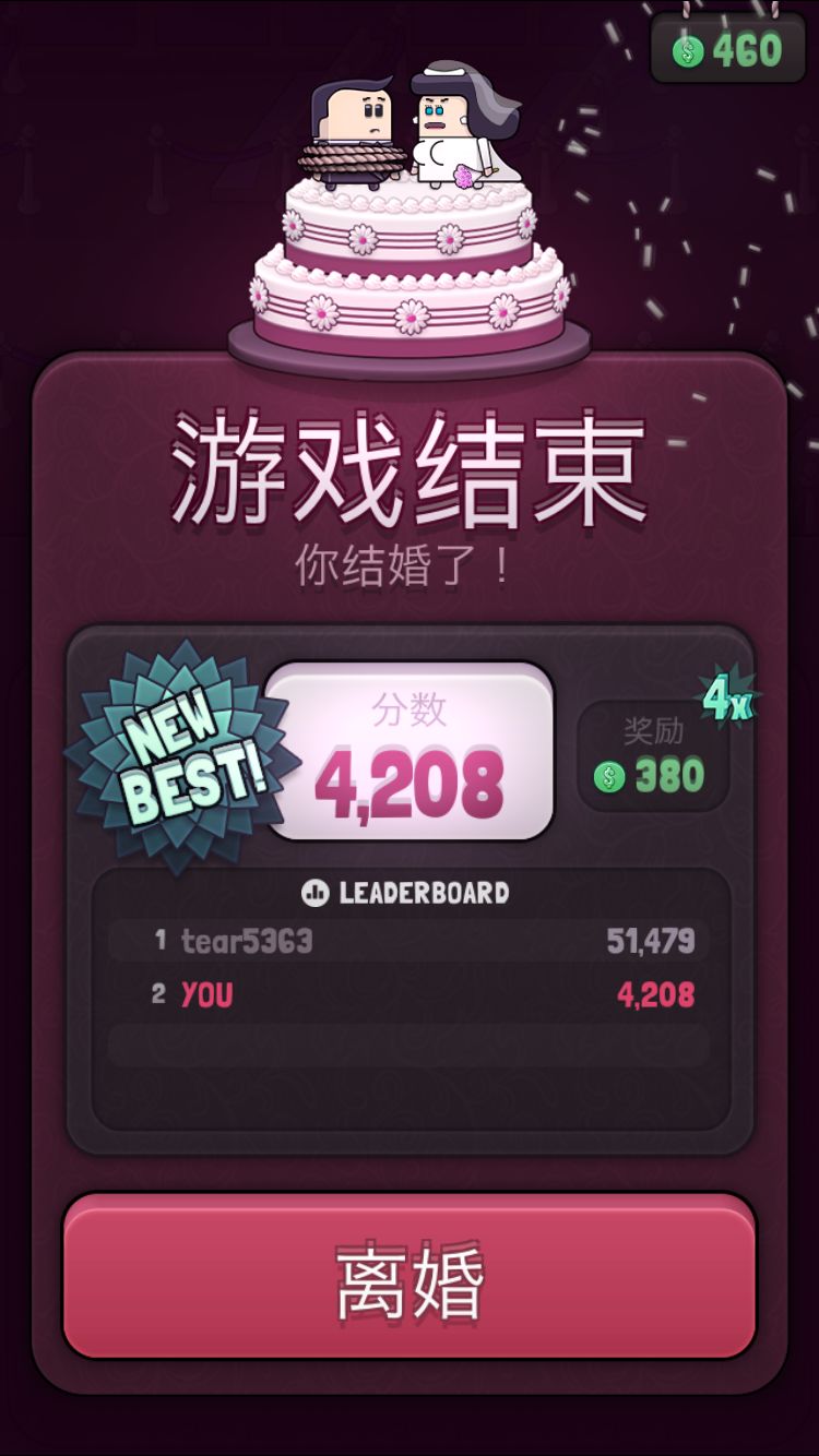游戏吸引人的另一个地方在于玩家可以收集100对新人造型,每对新人都有着独特的造型,特别是新郎在婚礼上逃跑时,每个人掉下来的物品都不一样,这也算是吸引玩家的一个亮点了。另外,不要以为只有男女才能结婚哦,咱们的《逃婚》游戏中,即便是同性新人也是有的,不过为什么会逃婚,那就真的不知道了。