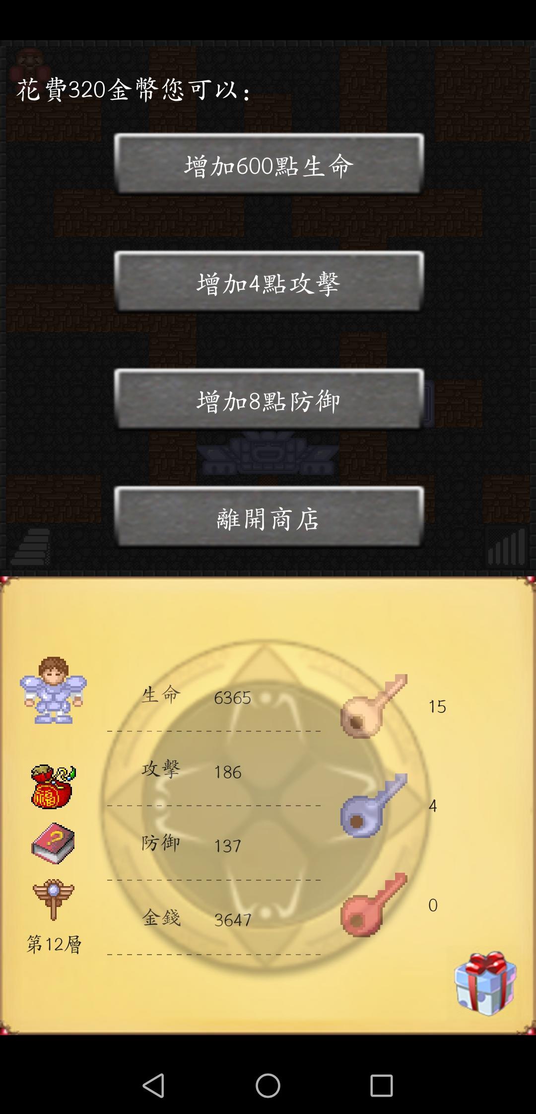 另一个是是二十多楼是是十几楼的商店,320金币等于4点攻击
