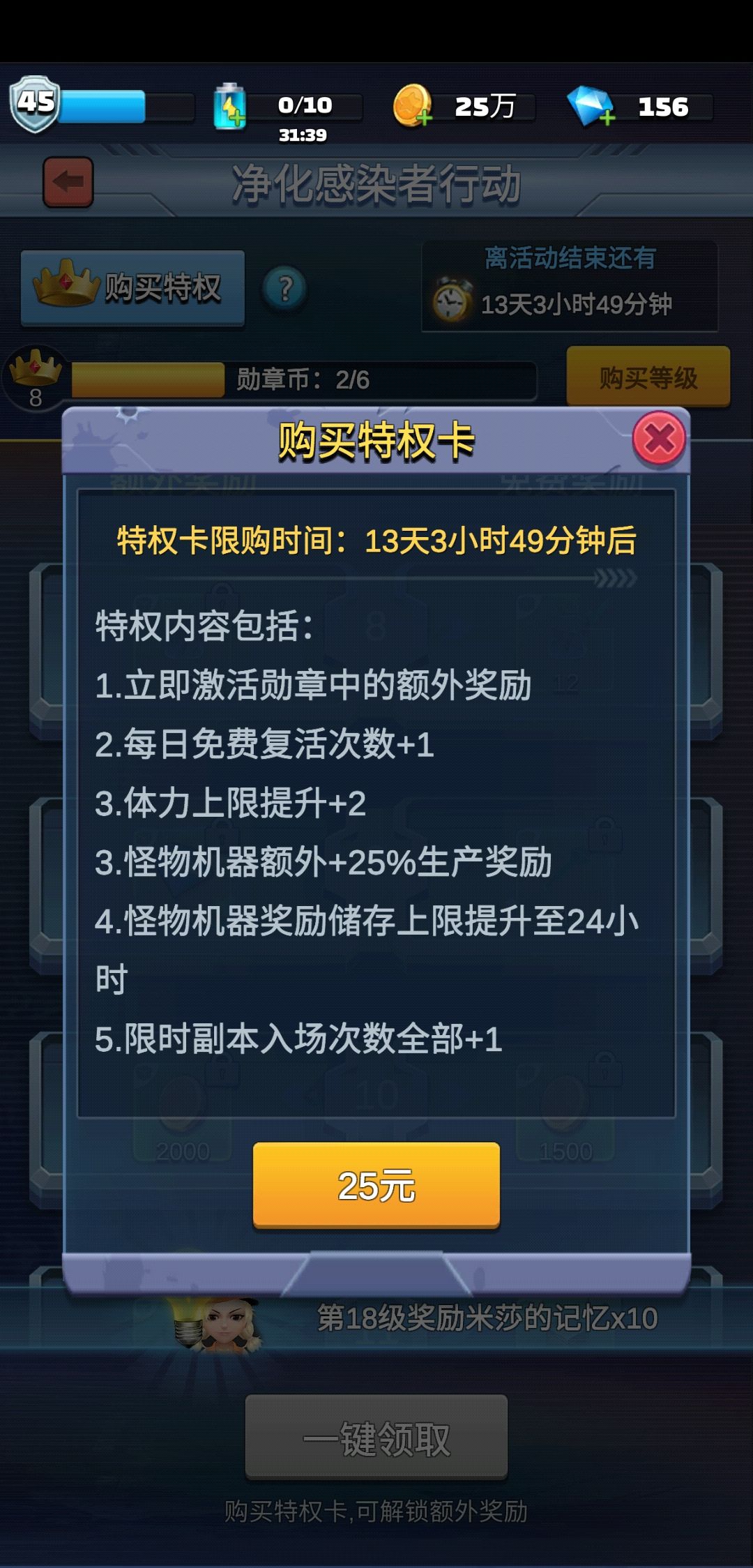 特权卡居然是14天机制,太坑爹了,买的晚了用了两天就没了。极寒之地有bug,上一层的冰本层还能冻我
