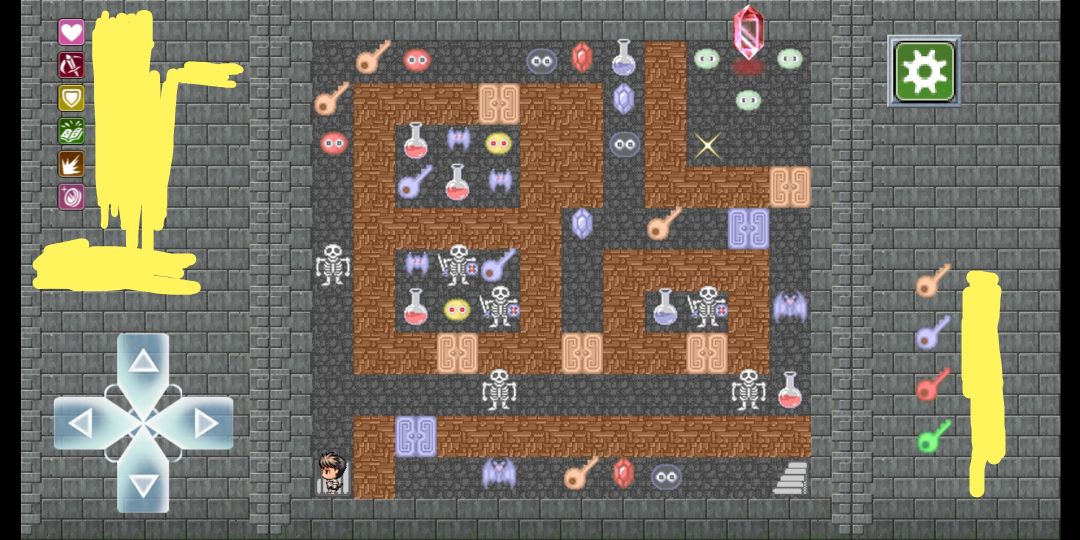 游戏体验感上,有了自动寻路,行走速度挺快的,战斗速度也可以调整,不那么拖沓(这反而是有随机性的一个好处,就是对不确定的结果的期待),相对一般的手机魔塔而言要好。另外,需要重点提到的吐槽点是机关相对太多了(虽然没魔塔盒子那么恶心人)。前面17层其实还好,机关暗墙这种的还不多,但是过了17F之后机关就扎堆出现了。尖刺地板,偶尔出现说不定还是加分项,然而其在后10F到处都是,那就变成考玩家手速了。暗墙在前17F的出现都是有或明或暗的提示的(也不排除我没发现没提示的暗墙),但是在后10F暗墙太多了,而且还有一些是没提示的,例如22F的暗墙(闲置骷髅,但是同样是21F右侧中间的闲置骷髅却没把守任何机关)、24F的3个暗墙等。玩得好好的才知道没发现暗墙净亏一吨是相当破坏游戏体验的,本人也有因为没发现暗墙被逼重打18F以后部分的经历,是相当怄火的。26F到28F相当恶心人,先是可转向箭头、又是不按常理出牌的暗墙+不必踩满的踩灯,还有自动寻路会把你带进去的团团转箭头,以及商店前的滑冰+箭头机关层。这么高密度的出现机关的感受,在魔塔吧的说法就是“现代风格黑海塔”。魔塔游戏设计的时候一个原则,就是机关层的目的是给玩家以在高压力拆塔中提供休闲的。本作品在在机关上的把控很明显是不好的,在此我也强烈建议作者减少机关数量。