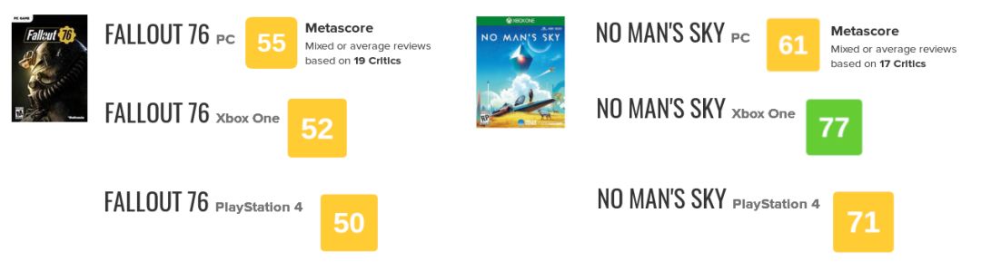 《无人深空》之后我们又看到了不少灾难性的首发,以《辐射76》《圣歌》等游戏为代表,高期待值,拥有大量玩家群体,最后游戏内容无法支撑,造成了口碑跳水、被玩家围攻。简直与当年的《无人深空》如出一辙。