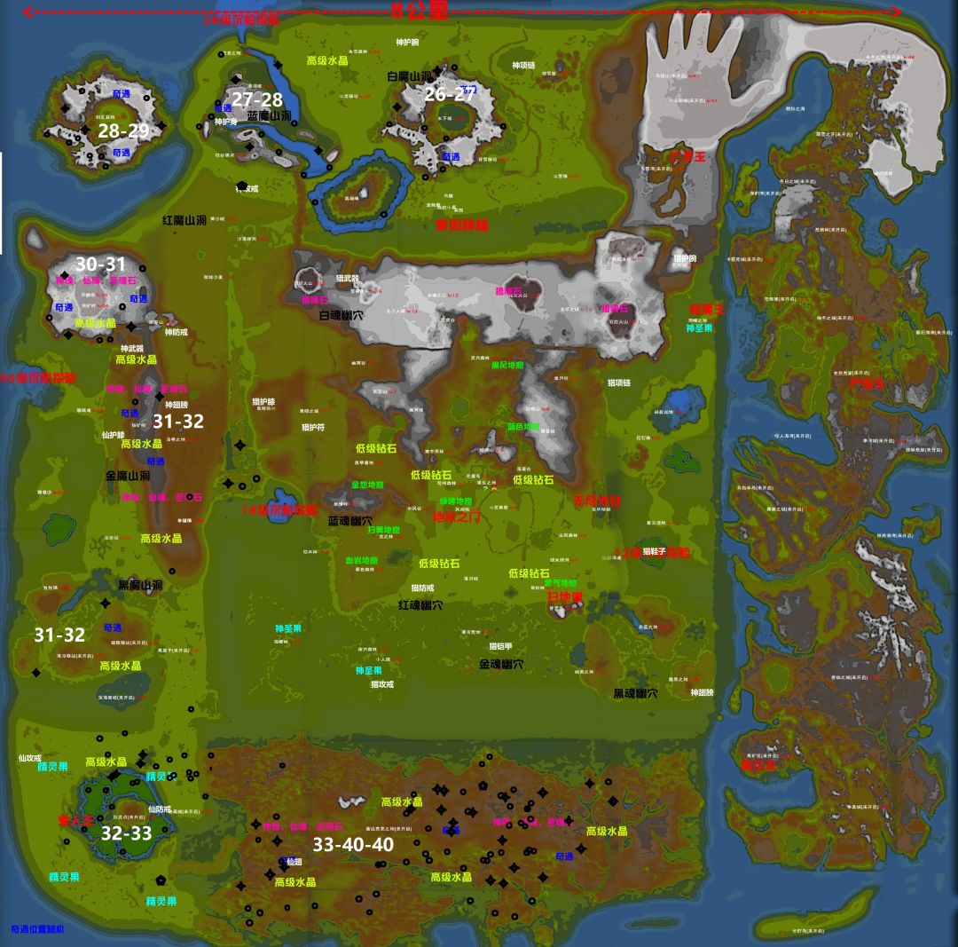 这是我跑了几天弄的奇遇地点地图,本来是按照大地图来的,发现大地图位置错位严重,又按照小地图弄了一遍。然后7.5更新了,大地图位置修复了,找了几个偏差较大的点修正了下。