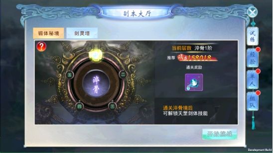 锻体秘境每天可无限次数挑战,玩家可以通过调整仙法,装备和技能等配置,巧妙越过推荐战力挑战。