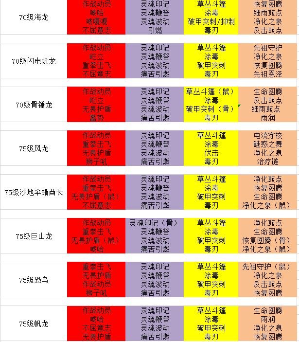 红色-战士 紫色-术士 黄色-刺客 橙色-萨满