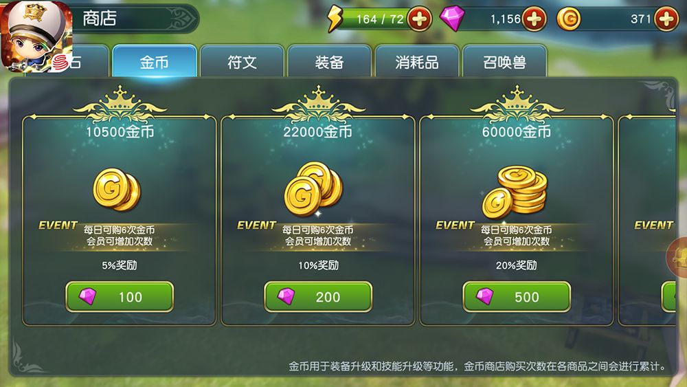 当然了,不得不说最快的获取金币的办法就是用钻石去商店兑换金币了。不过换金币也是有讲究的哦,在商店里面兑换金币是有折扣奖励的,而如果在需要使用金币时发现缺少而选择直接兑换的话,是没有折扣的,请务必注意这一点。