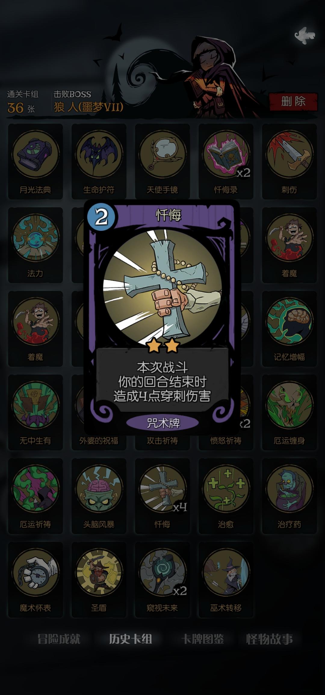 看穿刺伤害,忏悔之灵效果必拿,忏悔牌多多益善,装备里边还有本忏悔书,狼王被摁在地上锤