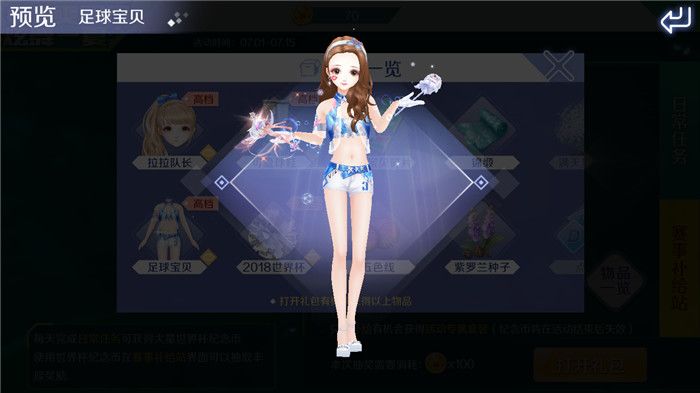 女生通过赛事补给站有机会获得“拉拉队长”发型、“足球宝贝”套装、“可爱球鞋”、“2018世界杯”配饰、“足球宝贝”服饰碎片等。拉拉队长当然是赛场上必不可少的,整体蓝色调的服饰在夏天也给人带来一股清凉感。穿上这样一套清爽性感的拉拉队长服饰,相信男球员们都会更有动力吧!