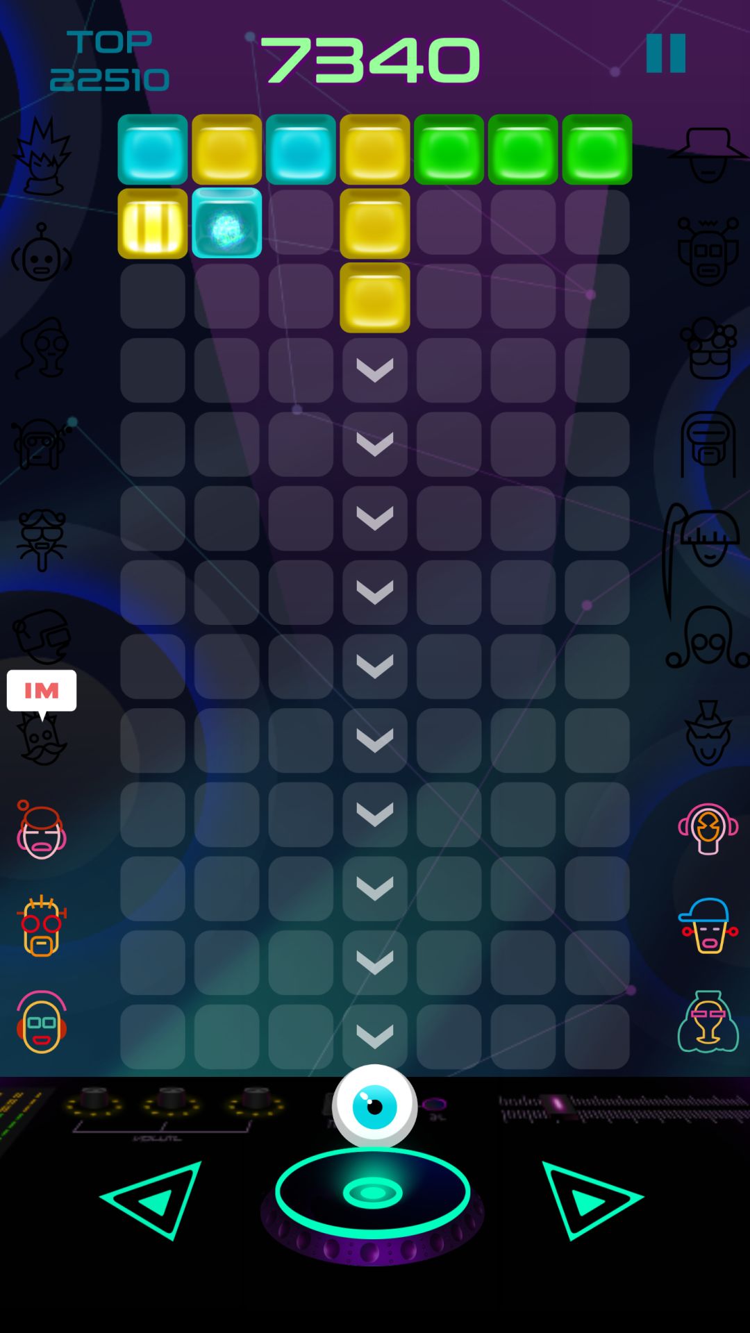 游戏中绚丽的画面效果令人感觉十分的迷,伴随着音乐真的很DJ的感觉,而且到达一定分可以解锁一个DJ,他们就在游戏界面的两边,玩过毒厂前作的应该能看出来这些DJ是BBTAN,CCTAN,DDTAN里面的人物。这次来客串也是个小惊喜,毕竟他们在那些系列里用歌声洗脑了一票人,这次又过来打碟了,再次见到真是有点小激动呢。