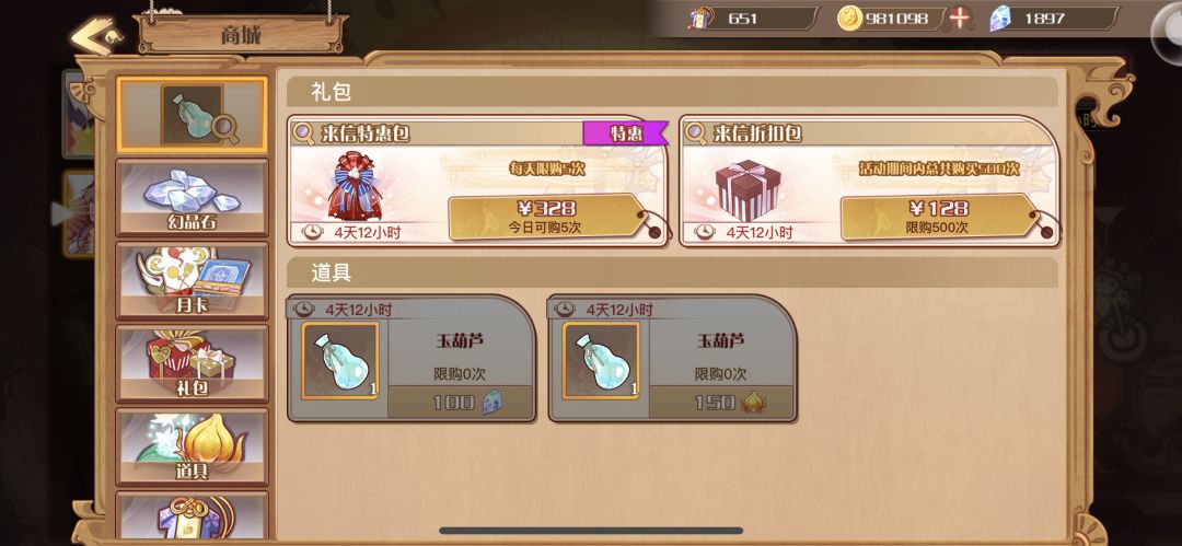 综上!如果想用💎抽双抉,买36次葫芦就可以了!!不要直接买40次,这样多出来的4个葫芦就浪费了!除非你愿意继续花钻或者花rmb再凑个十连
