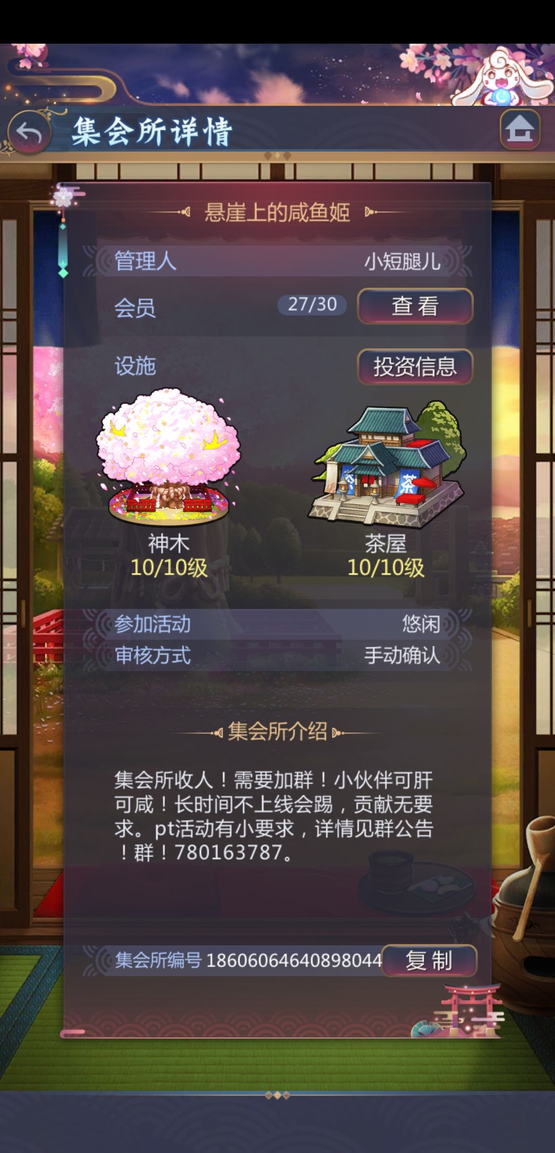 满级集会所长期收人!满员会删帖!求活跃小伙伴!