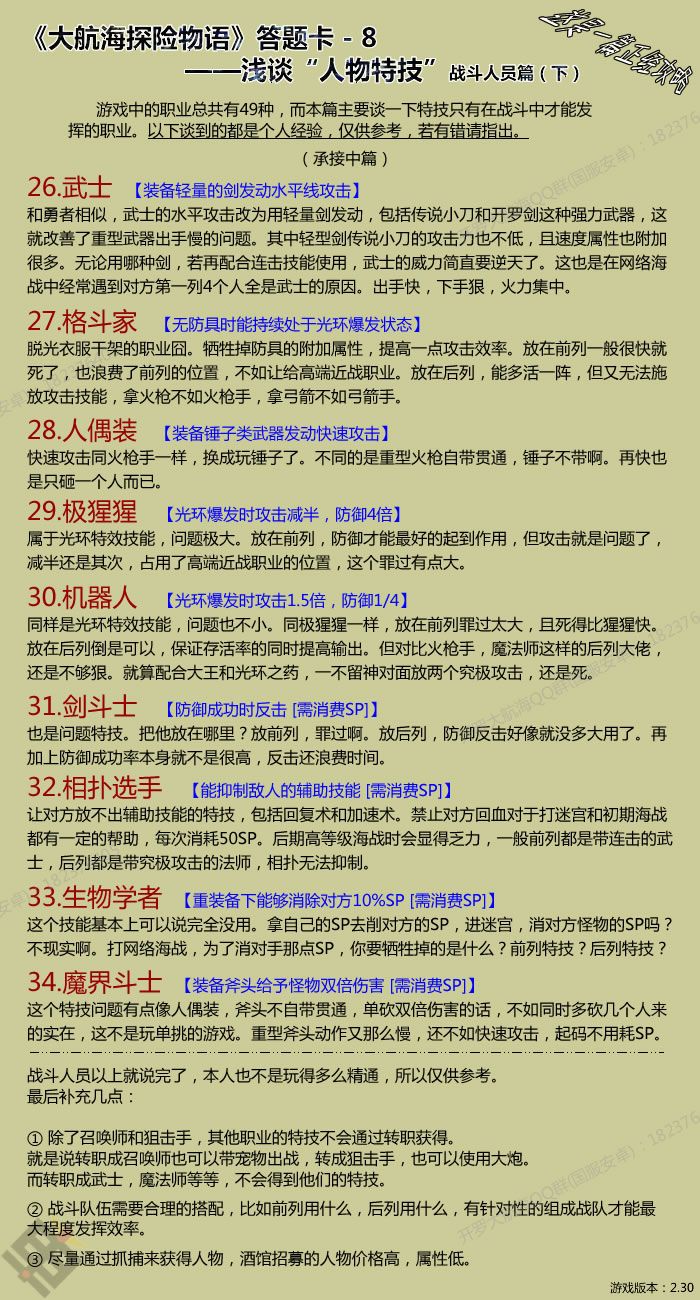 【个人经验】浅谈“人物特技”(战斗人员篇)2.26更正武士装备问题