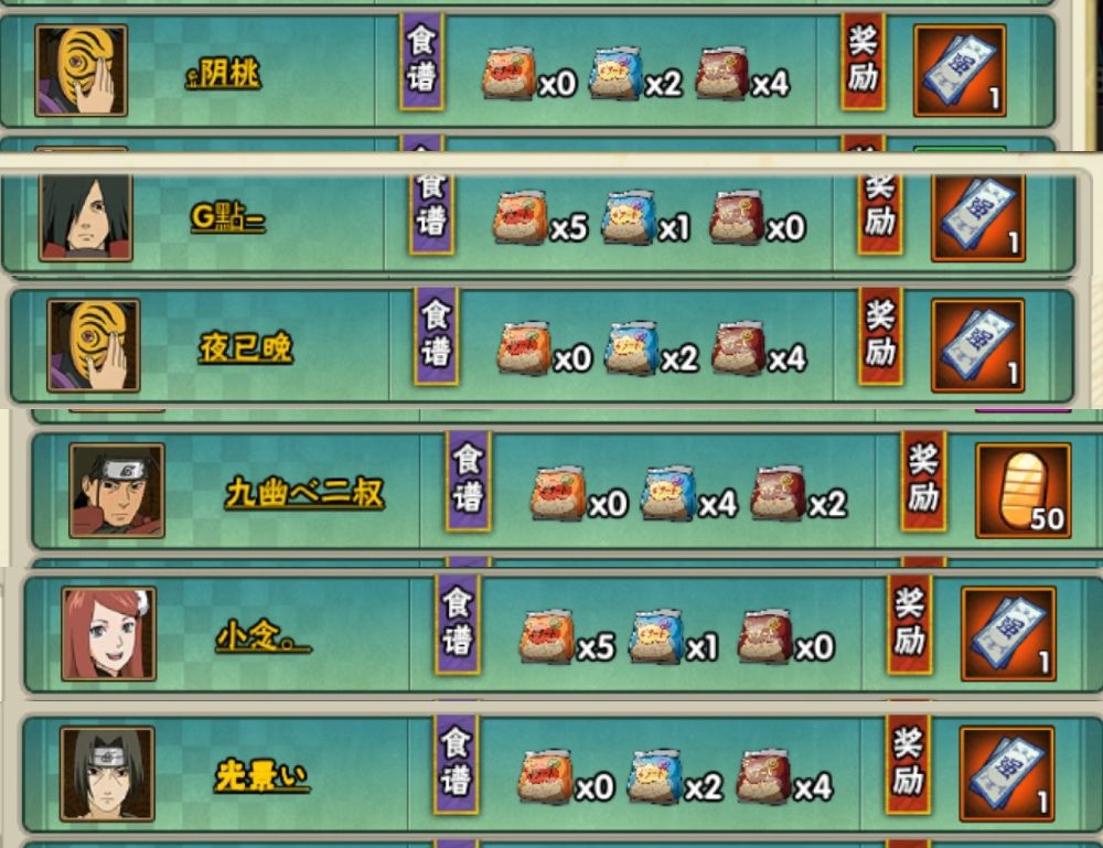 这里不同配比会有不一样的奖励,虽说“查看食谱”可以看到其他玩家最近的配比与奖励吧,但是事实证明,就算一模一样的配比在同一时间也不会出来一样的奖励,更何况不同的时间段呢!这里边比较好的奖励就是50金币与保护符了,一直看到金币都会更激动一些,实际上保护符才是最好的(用金币衡量一下嘛)通过之前的活动经验和此次的观察发现,想要获得这两样奖励,几率比较大的配比,就是其中一种口味的数量是0,看!这几个都是如此!