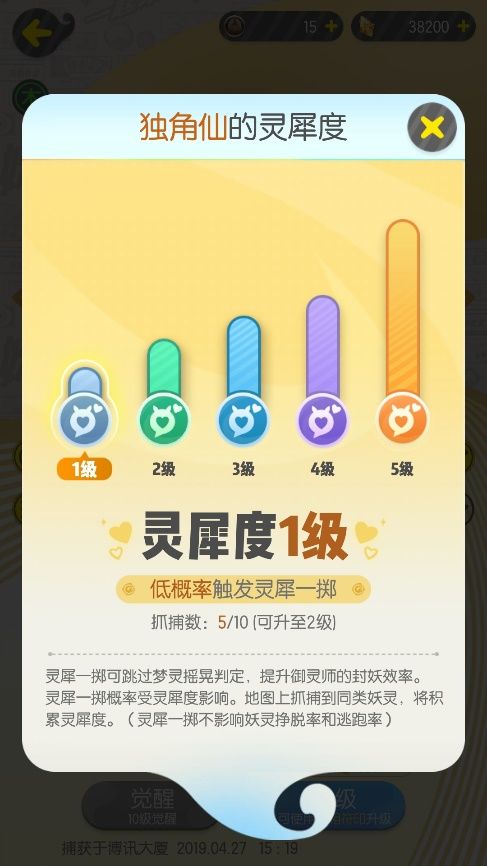 灵犀度:灵犀一掷受灵犀度影响,更新后在地图上抓捕到同类妖灵,将开始积累灵犀度。