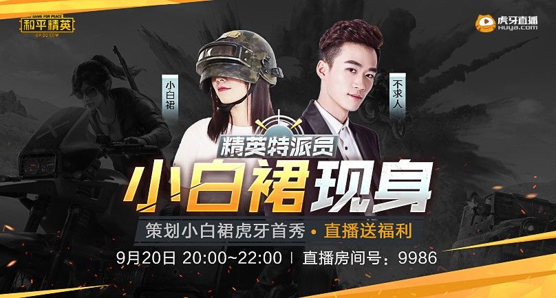 9月20日晚8点,我将现身虎牙直播间9986,和人气主播不求人一起开黑直播,为大家揭晓和平精英官方策划的真容。首次亮相的我~为特种兵们精心准备了幻影战神永久套装等各种限量游戏道具,sony耳机,百元红包等各种福利,错过这次福利放送可别怪小白裙没有提醒你哦!