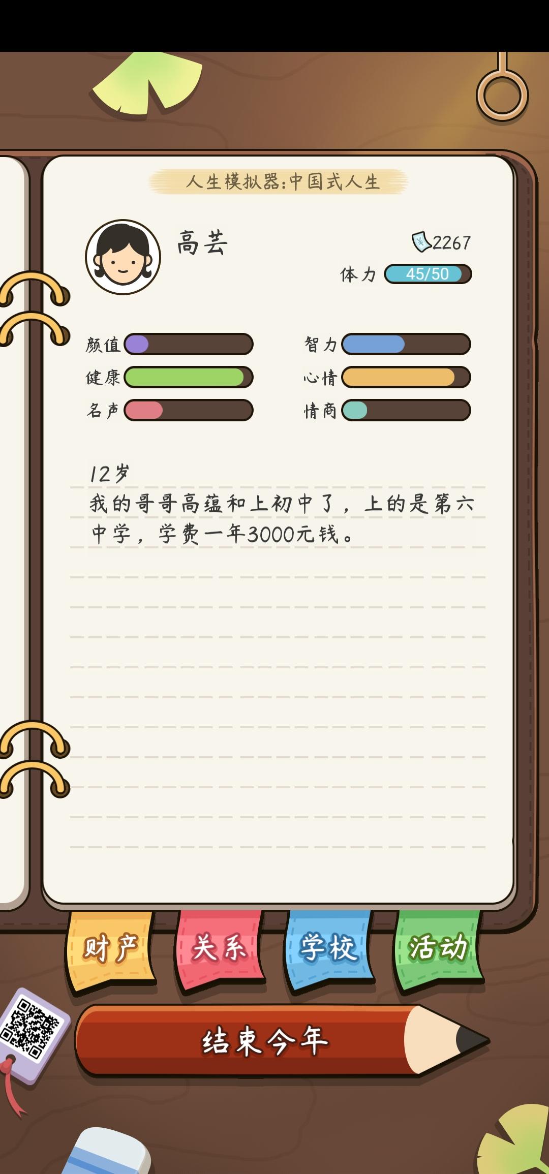 有点bug,时间有点错乱,19岁后变12岁了,还有就是有时候会卡,点哪个键都没反应。