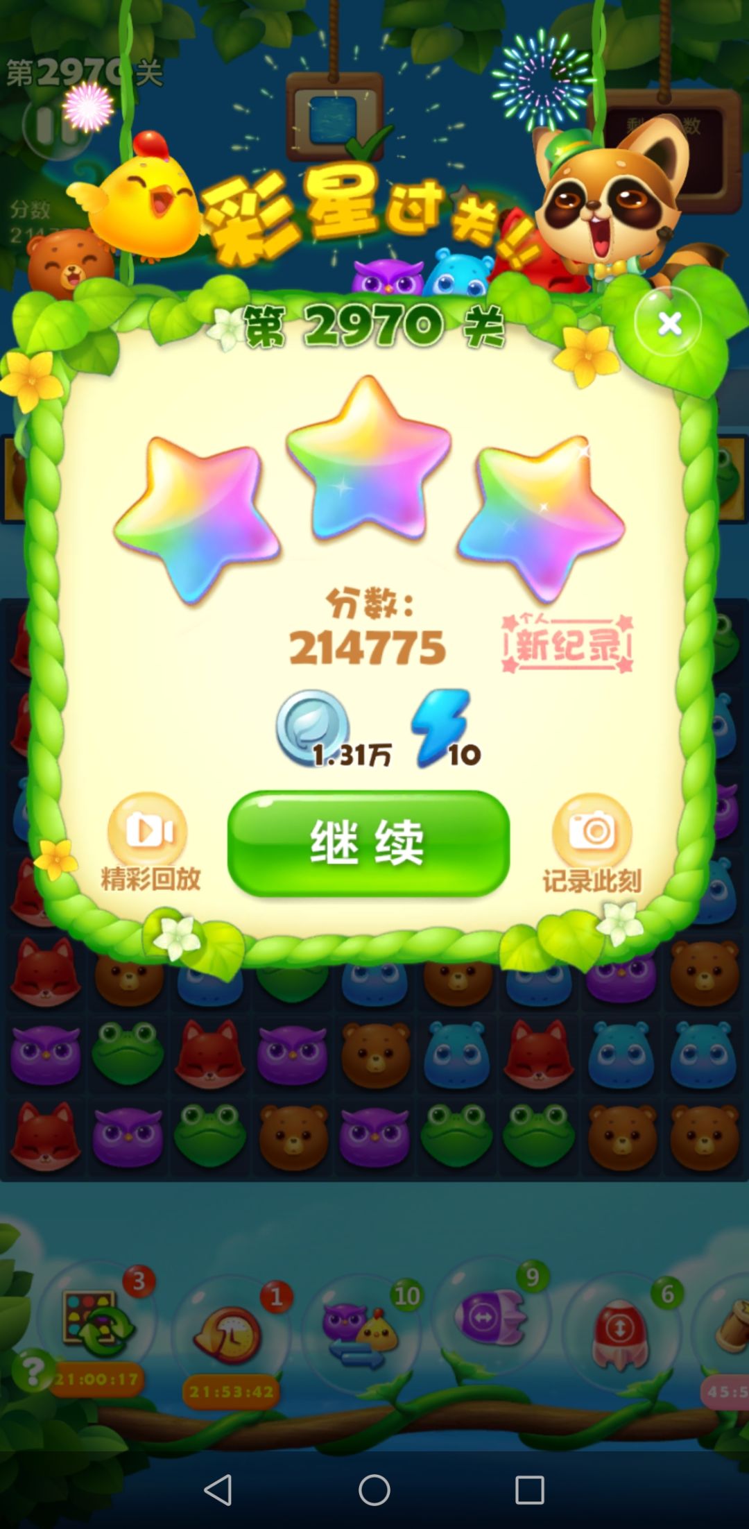 这次更新,主线里算是最容易的一关了,两把彩星过关,余11步,当然压豆不行了,直接上道具吧