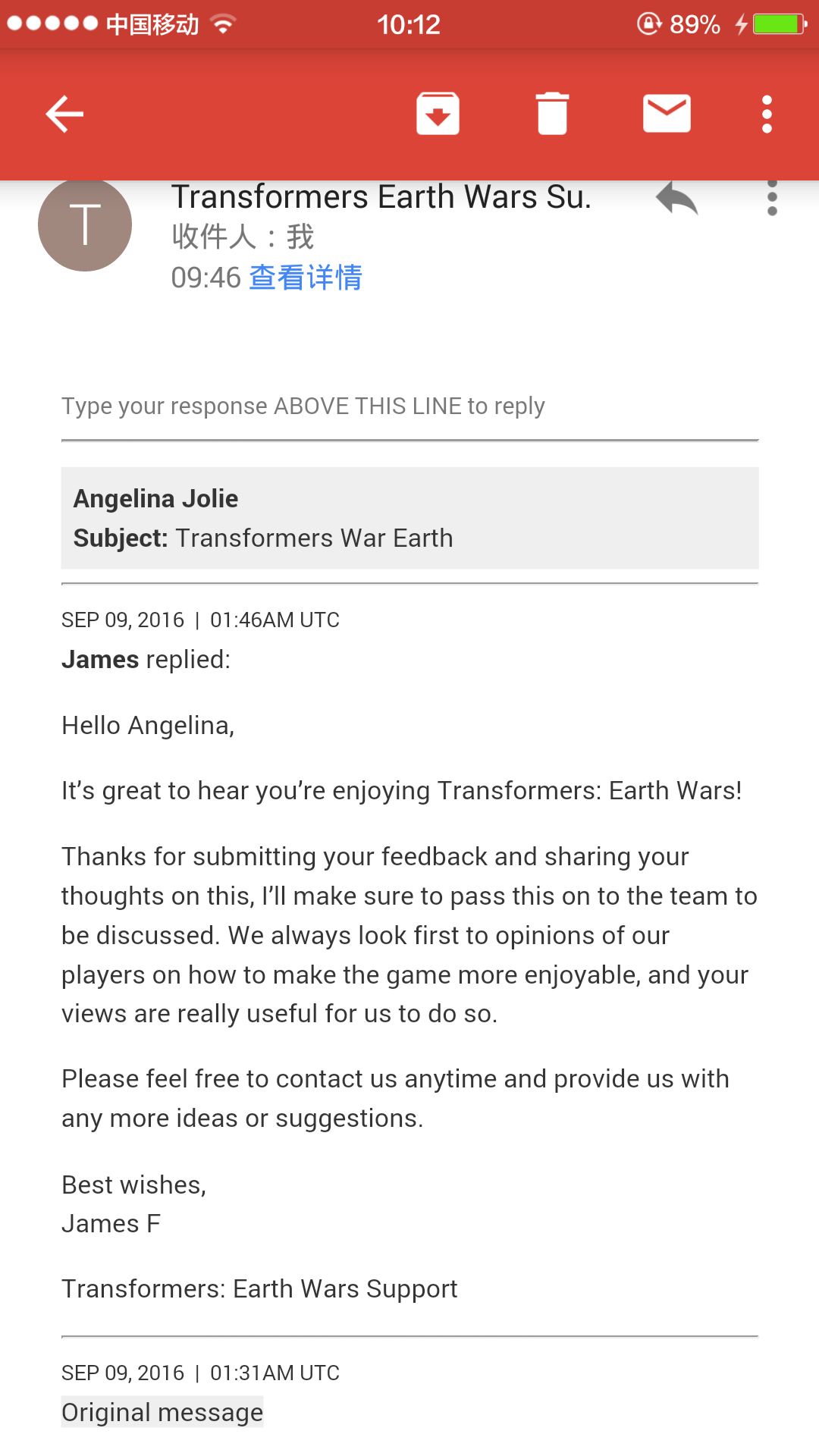 并记录下来反馈给开发者得到了James反馈的信息,让我受益匪浅。